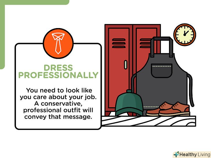 Одягніться презентабельно.те, як ви виглядаєте, є ключовою частиною Вашого привітання. Ви повинні одягатися так, щоб всім своїм виглядом показувати, як любите свою роботу. Підійде консервативний професійний костюм. Якщо в магазині, де ви працюєте, немає дрес-коду, в якому є певні правила, не варто надягати провокаційний одяг, яка може образити почуття покупців і змусити їх відчути себе некомфортно.[3]
