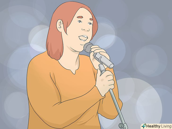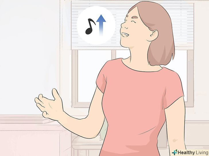 Тренуйтеся брати високі ноти.це як глазур на торті - не обов'язково, але якщо зробити добре, вийде чудово. До цього моменту ви, ймовірно, знаєте свій діапазон, і знаєте, які високі ноти ви можете взяти, а які - ні. Обов'язково тренуйтеся брати ноти, які для вас поки недоступні. Практика веде до досконалості.- Уявіть стрибок, коли берете високу ноту. Як ніби стрибаєте на батуті або просто підстрибуєте в повітря. Уявіть, що ви досягаєте найвищої точки стрибка, коли берете високу ноту. Вдихніть достатньо повітря і залиште рот відкритим. Взяти високу ноту не означає підвищити рівень своєї гучності.