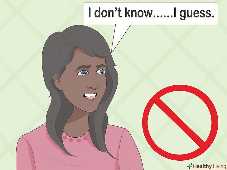 Не дозволяйте заважати вам.багато людей з низькою самооцінкою або страхом публічних виступів часто створюють про себе неправильне враження, використовуючи в своїй промові вирази «я не знаю», «напевно», «я думаю», «я не впевнений(а)». Позбавтеся від цих фраз, тільки тоді ваші слухачі повірять тому, що ви говорите.