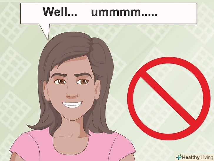 Виключіть зі своєї лексики непотрібні слова-паразити.навіть президенти і державні діячі іноді забруднюють свою промову різними "ее», «мм», «ну», "ось", але ж ви можете зробити свою промову красивіше, обходячись без цих слів і звуків. Ці слова не здатні дійсно підтримати розмову, до того ж, вони показують ваш сумнів і невпевненість. Навчіться продумувати все речення цілком перед тим, як почати його промовляти. Потім озвучте пропозицію, уникаючи слів-паразитів і непотрібних звуків.- Поставте вдома скарбничку і кидайте туди монетку кожен раз, як зловите себе на вимові слів-паразитів. Нехай ваші родичі сміливо беруть монетки з цієї скарбнички і витрачають їх на свої потреби.