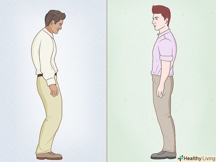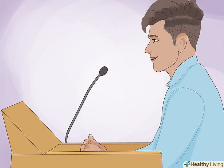 Прийміть впевнену поставу.якщо ви хочете, щоб вас сприймали всерйоз, хороша постава так само важлива, як і правильна мова. Підніміть підборіддя, розправте плечі, випряміть спину. Встановіть зоровий контакт з вашим слухачем. Якщо ви розповідаєте групі осіб, час від часу дивіться на кожного з них.