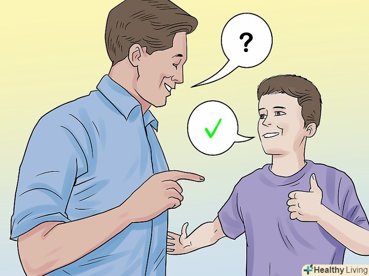 - Періодично кивайте, коли слухаєте, що вам говорять батьки. Тримайте голову високо піднятою, підтримуйте Регулярний впевнений (але не пильний) зоровий контакт. Цим Ви продемонструєте, що уважно слухаєте слова батьків і зберігаєте впевненість.