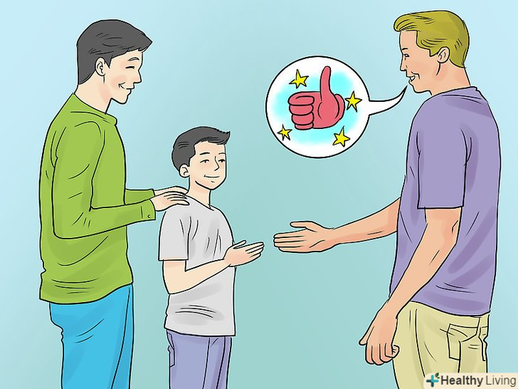 Дозвольте батькам відчути себе впевнено.іншими словами, "дозвольте їм добре виглядати в очах оточуючих".[7] поки ще не існує універсального способу виховання дітей, тому батьки іноді відчувають себе незахищено під впливом зовнішньої критики їх методів виховання. Допоможіть їм відчути себе хорошими батьками демонстрацією вихованої поведінки в суспільстві. Будьте доброзичливі і ввічливі з їхніми друзями або з батьками своїх друзів.- Вмійте підтримати розмову з друзями батьків, відповідайте на всі їхні запитання і постарайтеся показати максимально можливу зацікавленість спілкуванням.