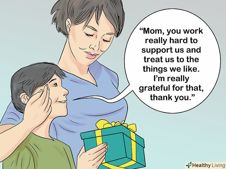 Демонструйте своє вдячне ставлення до батьків, коли звертаєтеся до них з проханням, і не забувайте говорити спасибі.[1] ніхто не любить зіпсованої і невдячної поведінки. Тільки уявіть, що до вас хто-небудь підійде і скаже: "Купи мені, нарешті, той подарунок, який я прошу!"Найімовірніше, ви відчуєте неповажне ставлення до себе і навіть образитеся. Тому Ви повинні продемонструвати батькам, що ви цінуєте ті подарунки, які отримуєте від них, і вдячні їм за всю ту роботу, яку вони виконують, щоб заробити гроші і забезпечити вас.- Спробуйте почати розмову з фраз наступного виду: "Мамочко, ти так старанно працюєш, щоб забезпечити нас і зробити так, щоб ми ні в чому не потребували. Я насправді дуже вдячний за це. Спасибі тобі".