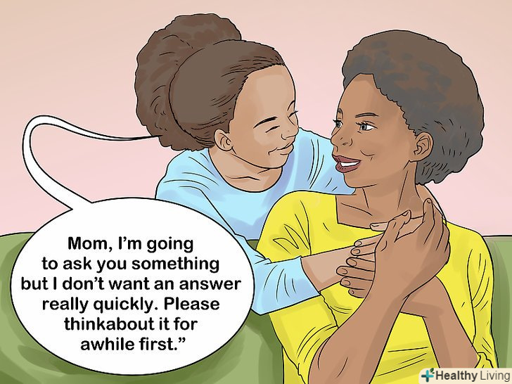 Дайте батькам час подумати.не варто вимагати від батьків негайної відповіді. Постарайтеся побудувати прохання наступним чином: "Мамо, я хочу попросити тебе про щось, але я не хочу негайної відповіді. Будь ласка, спочатку трохи подумай". Це дасть батькам час поміркувати над тим, чи хочуть вони купити вам подарунок або відвезти вас туди, куди ви просите.- Застосування даної стратегії покаже ваші терпіння і готовність почекати день або більше до отримання відповіді. Подібне ставлення до питання може вразити батьків, що підвищить ймовірність позитивного результату справи.