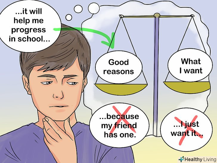 - Підготуйте кілька вагомих аргументів, щоб пояснити причину свого бажання (у вигляді подарунка, подорожі або іншої активності). Цим Ви продемонструєте батькам, що дієте не з імпульсивного прагнення, а все ретельно обдумали, перш ніж вирішили до них звернутися. Непоганим обґрунтуванням свого прохання може стати пояснення того, яким чином покупка допоможе вам краще вчитися, підготуватися до дорослого життя і розвинути ваші особисті якості. Іншими хорошими підставами можна вважати розвиток вашої уяви, істотне полегшення вашого життя, корисність для всієї родини і так далі.