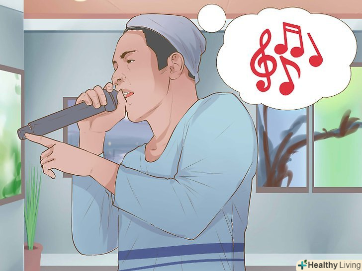 Почніть читати реп під музику .Запам'ятайте слова вашої улюбленої реп-пісні і читайте їх, слухаючи пісню на плеєрі — вдома, в машині, де завгодно. Робіть це голосно і впевнено! Намагайтеся читати реп, поки не запам'ятайте всі слова і (що важливіше), поки не будете правильно потрапляти в такт.- Пошукайте інструментальну частину пісні, яку ви вивчили. Якщо знайти таку не вдасться, то пошукайте щось схоже. Ви можете завантажувати музику з різних онлайн сайтів. Потренуйте ту пісню, яку Ви завчили. Знову ж таки, намагайтеся потрапляти в такт. Так ви навчитеся тримати ритм і темп.[3]