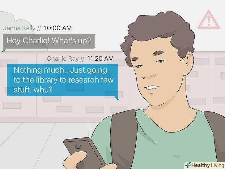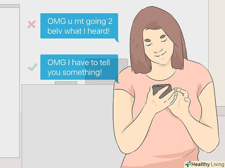 Не використовуйте велику кількість сленгових виразів в листуванні.при спілкуванні з предметом обожнювання дайте зрозуміти, наскільки ви розважливі і розумні. Використання великої кількості скорочень, абревіатур та інтернет-сленгу зробить вашу мову банальною, і людині може бути важко розібрати текст. Краще намагайтеся писати без орфографічних і граматичних помилок.[9]- Додати пару скорочень при листуванні-це нормально. Наприклад, фраза: "ОМГ, я повинен тобі дещо сказати!"- цілком прийнятна, в той час як: «Прив, спс за поздр з др» — навряд чи дозволить вам завоювати серце коханої людини.