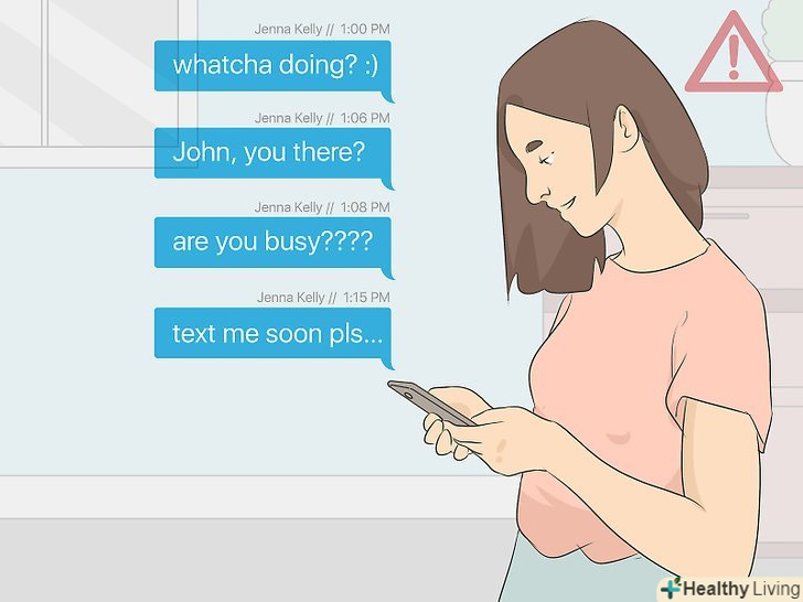 Намагайтеся не писати більше, ніж співрозмовник.якщо ви постійно надсилаєте довгі простирадла тексту, а людина відповідає коротко (або не відповідає взагалі), швидше за все, він зайнятий, і, якщо ви продовжите закидати його повідомленнями, він може розлютитися. Звичайно, не обов'язково зберігати пропорцію один до одного, проте намагайтеся мати приблизно рівне співвідношення повідомлень.[12]- Не зв'язуйтеся з людиною, щоб запитати Його, Чому він вам не пише. Це може здатися відчайдушним або напористим кроком. Якщо він не відповідає, дайте йому трохи особистого простору.