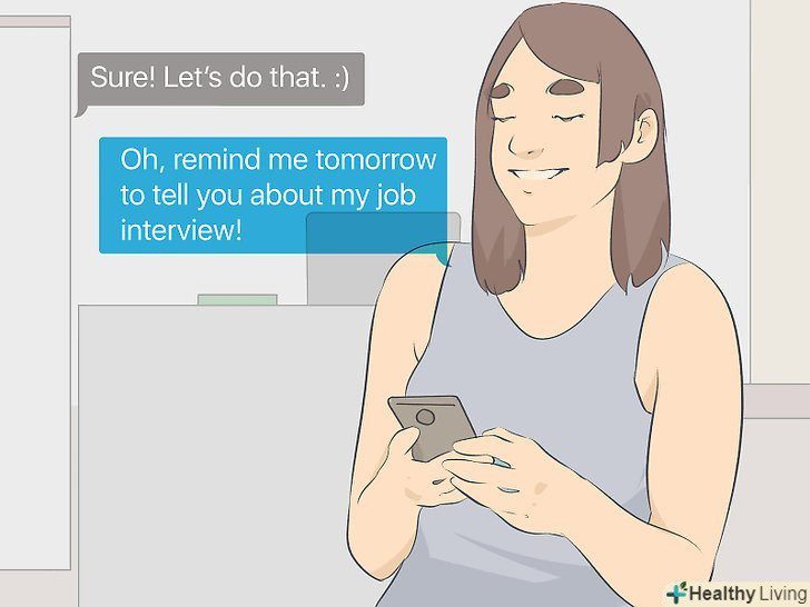 Намагайтеся першим завершувати спілкування.якщо ваш предмет обожнювання завжди буде прощатися першим, можливо, він почне думати, що ваші почуття до нього сильніше, ніж його. Дайте йому можливість нудьгувати за вас, завершуючи розмову трохи раніше, ніж він цього очікує. Якщо ви закінчуєте розмову, тому що вам потрібно кудись піти, обов'язково згадайте про це, щоб він знав, що ви живете насиченим і захоплюючим життям!- Змусьте предмет обожнювання передчувати спілкування, сказавши що-небудь на кшталт: "О, Нагадай мені завтра розповісти тобі про свою співбесіду на роботу!»