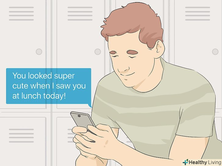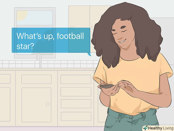 Спробуйте придумати особистий спосіб почати розмову.не варто просто писати:» привіт«, — або:»Здрастуй". Краще спробуйте підійти до справи творчо, щоб людина зацікавився розмовою з самого початку. Наприклад, можна згадати що-небудь, про що ви говорили при минулій зустрічі, або відправити повідомлення, коли що-небудь нагадає вам про предмет обожнювання.[1]- Наприклад, можна сказати що-небудь на кшталт: "Привіт, Антон! Я тільки що бачила сорочку, яка ідеально підійде до твого ковбойського костюма на Хеллоуїн. Хочеш побачити фотографію?»