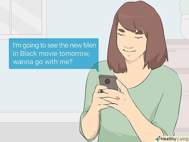 Побудуйте конкретні плани, щоб провести час разом.флірт по листуванню — це здорово, однак, якщо вам дійсно подобається співрозмовник, важливо проводити з ним час і наживо. Спробуйте придумати конкретну пропозицію або подія, а потім запитати предмет обожнювання, чи не хоче він приєднатися до вас. Це з більшою ймовірністю призведе до побачення, ніж банальне: «нам слід як-небудь зустрітися».[7]- Спробуйте написати щось на кшталт: „Завтра я збираюся подивитися чергову частину“ Людей в чорному", хочеш піти зі мною?»