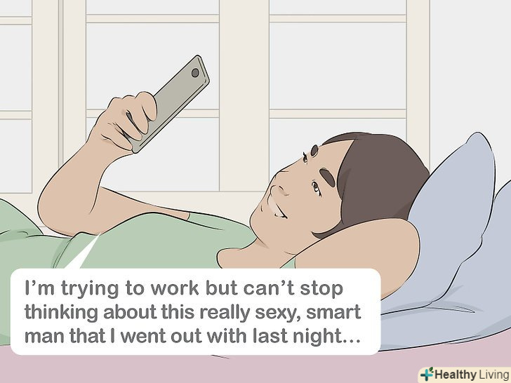 Почніть з обміну звичними повідомленнями, особливо вНових відносинах.на початку відносин з новим партнером важливо не перестаратися. Напишіть щось просте і невинне, щоб почати бесіду.[1]- Наприклад, можна написати: "сподіваюся, що у тебе все в порядку. Я думаю про тебе", - або:»я не можу не думати про твою милу посмішку".