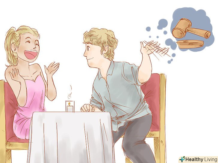 Відмовтеся від будь-яких суджень або критики того, що говорить людина.слухаючи співрозмовника, не варто подумки засуджувати або критикувати його слова. Навіть якщо ви не висловите свої думки вголос, швидше за все, вони відіб'ються у виразі вашого обличчя або в мові тіла. Засудження або критика також завадять вам слухати те, що говорить людина, тому що ви вже складете власну думку.[10]- Намагайтеся проявлятиспівпереживання до співрозмовника, замість того, щоб засуджувати, критикувати або звинувачувати його. Подумайте, що Ви б відчували на його місці.
