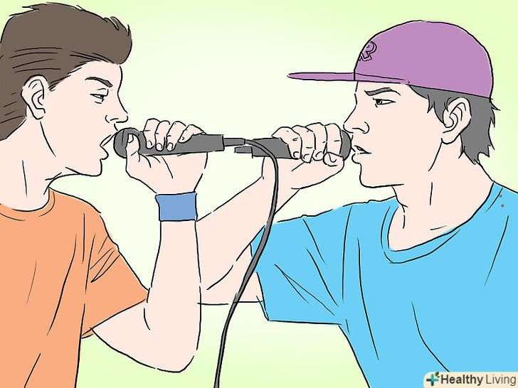 Змагайтеся з друзями в реп-баттлах і фрістайлах.тут ви будете змушені читати фрістайл на Біт заданий діджеєм і будете обмежені за часом, тобто вам доведеться заздалегідь продумувати схему свого фрістайлу. Також ви будете в оточенні інших МС, які можуть бути більш досвідченими і будуть збивати вас жорстокими словами на Вашу адресу для того щоб розташувати до себе аудиторію. Це обов'язкова частина публічних виступів, і саме тому вам потрібно багато практикуватися і володіти грубою шкірою вже до того, як ви почнете виступати на публіці.- Гарною ідеєю буде відвідати кілька баттлів до того, як взяти участь в них самому. Будьте повністю впевнені в своїх здібностях і оцінці здібностей ваших конкурентів до того, як взяти участь в баттлі.
