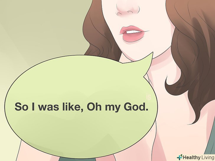 Наслідуючи манері спілкування "Valley Girl" (що актуально для жінок), використовуйте слова на кшталт "like" (як вигук), "oh my god" І "a lot."наприклад, скажіть щось на кшталт" So I was, like, walking down the street, and this guy was wearing, like, the weirdest hat, I was like 'Oh my god' cause, yeah". Багато сучасні дівчатка і дівчата-підлітки говорять саме так. Стиль "Valley Girl" побачив світ у 80-их, його копіювали з фільмів. Дорослі і літні люди так не говорять, врахуйте, а деяким такий акцент і зовсім здається образливим.