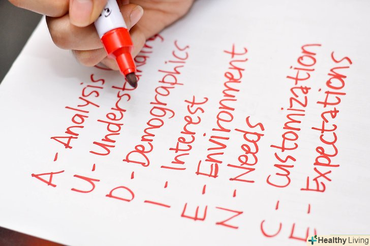 Використовуючи акронім, дайте відповідь на наступні питання.просто запам'ятайте слово аудиторія.- Аналіз-хто складає вашу аудиторію?