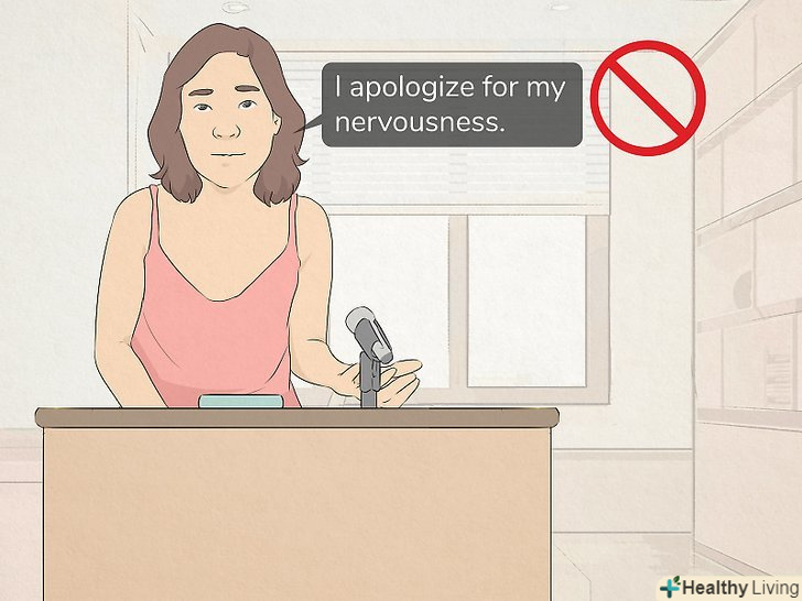 Не починайте з вибачень. Не починайте мову з коментаря такого роду: "мені шкода, якщо мова погано сформована" або "Вибачте, що так нервую". Глядачі це помітять, тільки якщо ви їм скажіть. Якщо будете вести себе впевнено і зібрано, то глядачі подумають, що все так і треба ".[20]