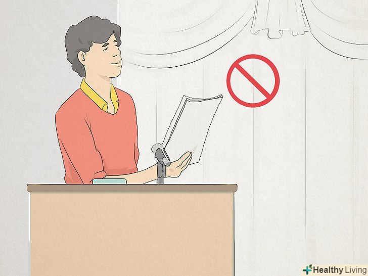 - Завчіть перше речення мови. Це допоможе вам пересилити тривогу, і ви не почнете мова занадто строго. Також принесіть з собою копію мови в друкованому вигляді.[19]