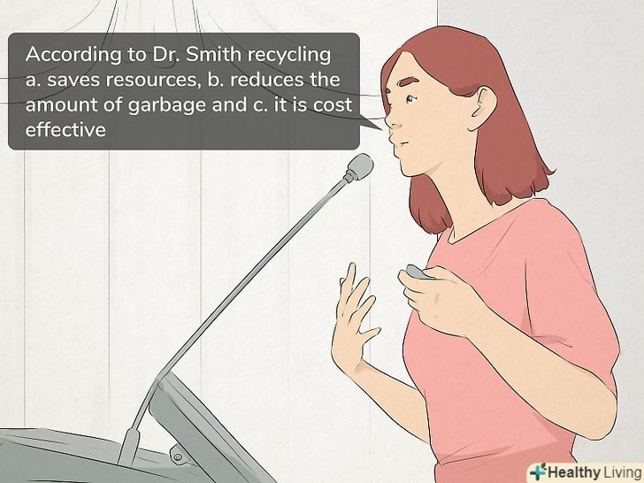 Сформулюйте думку експертів.якщо можете знайти експерта з даної теми, який погоджується з вашою позицією, то процитуйте або перекажіть думку цього експерта, щоб ваша мова і позиція мали підставу з самого початку.- Якщо ви намагаєтеся переконати глядачів у важливості формування звичок здорового харчування і занять спортом, то можете почати з твердження, зробленого дуже відомим експертом в цьому питанні для заманювання публіки.