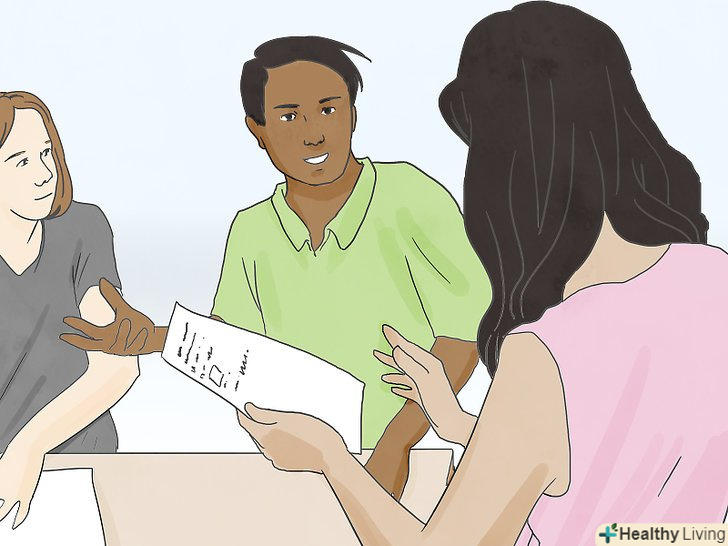 Обговоріть питання в групі.при виконанні групової роботи спільне обговорення теми дозволить кожному учаснику викласти свої ідеї і дізнатися думки колег. Обговорення слід запланувати в спокійному місці без відволікаючих чинників. Навіть якщо вам потрібно виконати індивідуальну роботу, спільне обговорення з друзями або колегами допоможе вам поглянути на тему під іншим кутом. Пам'ятайте, що кожен повинен мати право голосу.[2]