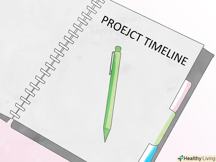 Складіть графік виконання роботи.для успішного виконання роботи потрібно докласти багато часу і сил. Вам буде потрібно визначити свої пріоритети і скласти план дій. Визначте конкретний час на дослідження та плануйте щоденні, щотижневі або щомісячні цілі (наприклад, завершити детальний план проекту до кінця першого тижня роботи).[4]- Слідкуйте за дотриманням графіка за допомогою додатків для смартфона на кшталт «Календар + Планувальник», які дозволяють організувати завдання і терміни.[5]