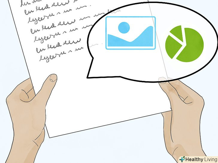 Додайте "родзинку" у вашу роботу.використовуйте динамічні елементи, щоб ваша робота не була схожою на всі інші. По можливості додайте звукові, наочні або відчутні компоненти, щоб зробити роботу більш цікавою і доступною. Різнопланові підходи допоможуть розкрити нові грані теми вашої роботи.[10]- Додайте звуковий елемент на зразок запису інтерв'ю або радіопередачі, щоб оживити роботу.