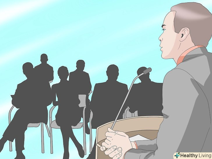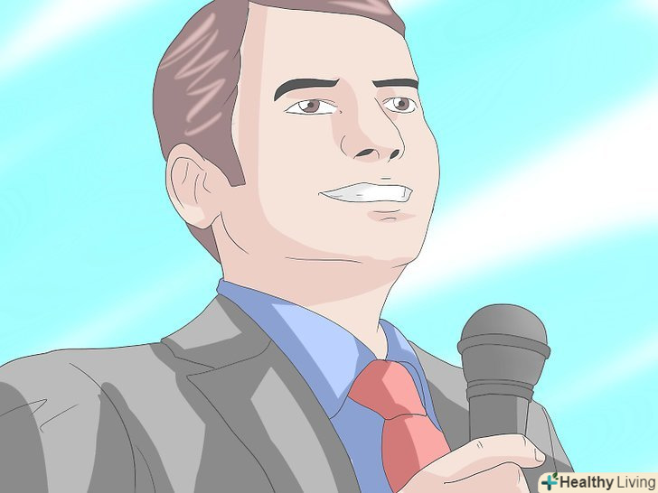 Говоріть з упевненістю.ви коли-небудь помічали, що люди, які діють впевнено, автоматично здаються харизматичними і красномовними? Коли ви говорите з упевненістю, ви викликаєте цікавість у вашій аудиторії. Навіть якщо ви так не відчуваєте, дійте впевнено, і ваша мова буде більш професійною і красномовною. До того ж, коли ви робите вигляд, що впевнені в собі, ви дійсно почнете відчувати себе більш впевнено. Безпрограшна ситуація.[6]