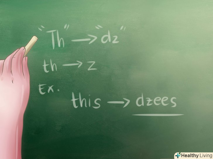 " Th "переходить в"dz"."th" вимовляється як" z. "а якщо бути точніше, як звук"dz". Наприклад," dzees "замість " this".