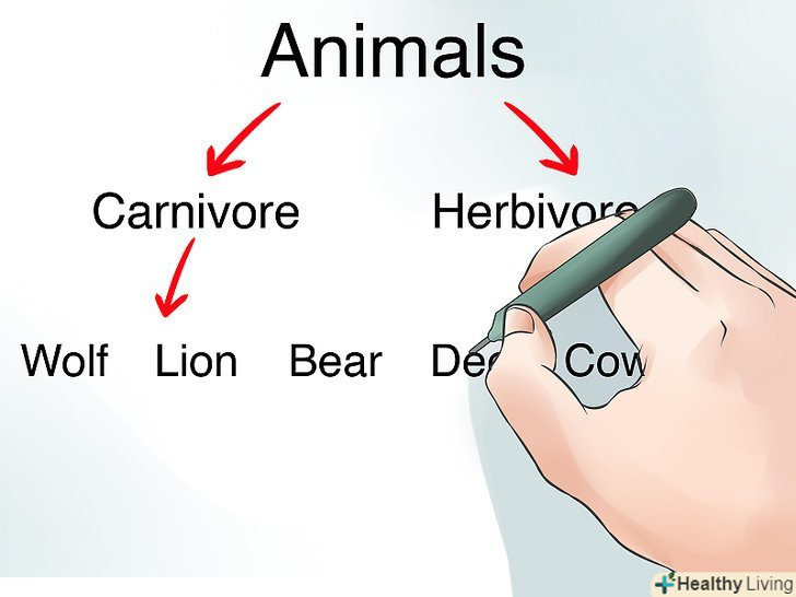 Мозковий штурм за списком важливих тем. перед тим як ви оберете Центральний предмет вашої карти ієрархій, вам необхідно записати список значущих явищ, пов'язаних з вашим проектом або метою. Якщо вам відомо, що ваш проект буде присвячений деревам, наприклад, тоді це слово буде на вершині вашої карти. Але якщо ви знаєте тільки те, що вам потрібно написати про природні об'єкти або природних матеріалах, тоді завдання стає трохи складніше. [1] почніть з того, що випишіть всі поняття або явища, що відносяться до вашого головного предмету.- Дерева