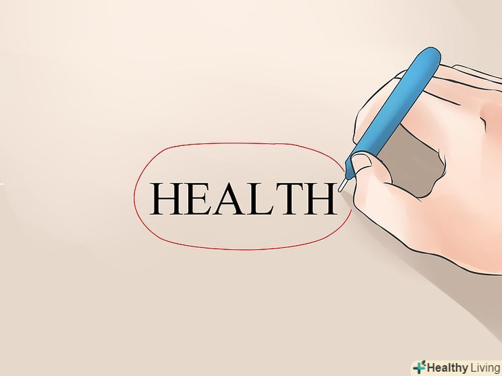 - Наприклад, головна тема « "Здоров'я". Напишіть цю тему в центрі аркуша паперу і обведіть гуртком. Це коло має бути більшим і помітнішим за всіх інших, щоб підкреслити те, що це центральна тема в карті.