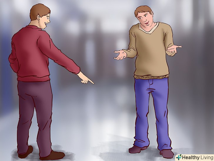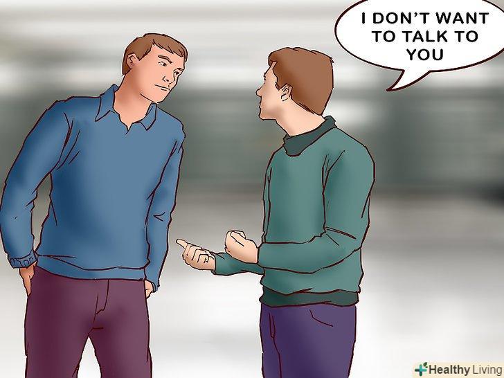 Відмовтеся.якщо хтось пристає до вас або підбиває вас на сварку, то спокійно скажіть, що ви не збираєтеся вступати в перепалку.[11] людина здатна переводити вас тільки в тому випадку, якщо отримує владу над вашими емоціями. Якщо показати, що вам немає до нього справи, то кривдник просто втратить інтерес до вас.- Якщо людина проявляє завзятість, то ігноруйте його.
