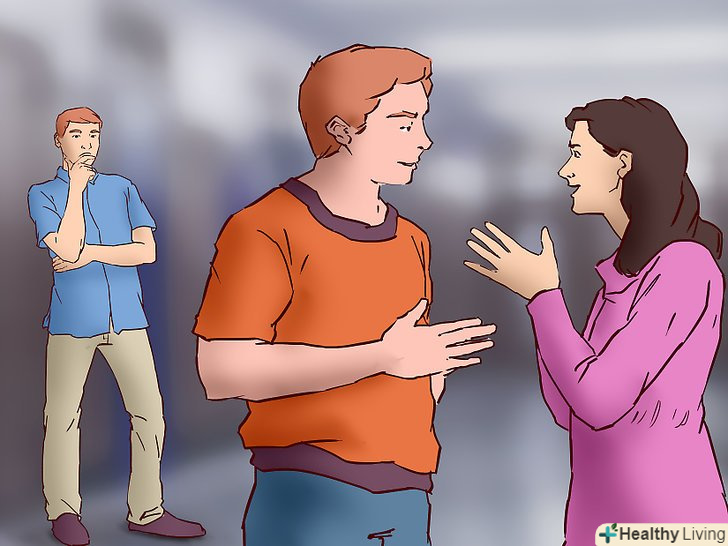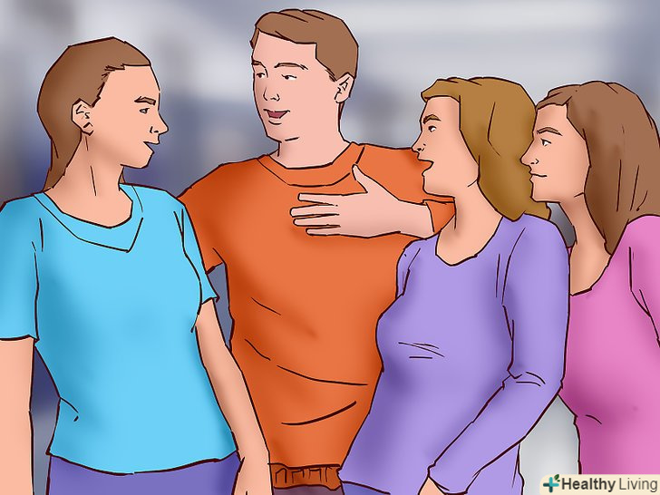 Жести і міміка.якщо схрестити руки і ноги і дивитися вниз, то оточуючі навряд чи приймуть вас за доброго і привітного співрозмовника. Слідкуйте, щоб ваша мова тіла була максимально відкритою: повертайтеся до людей обличчям, посміхайтеся, кивайте головою і підтримуйте зоровий контакт.[6] намагайтеся не схрещувати руки і ноги, не горбитися і розпрямляти плечі.- Для зорового контакту не обов'язково постійно дивитися людині в очі. Це можуть бути і інші точки особи: щоки, лоб, ніс, рот.[7] якщо раніше ви уникали зорового контакту, то спочатку вам буде непросто. Не здавайтеся.