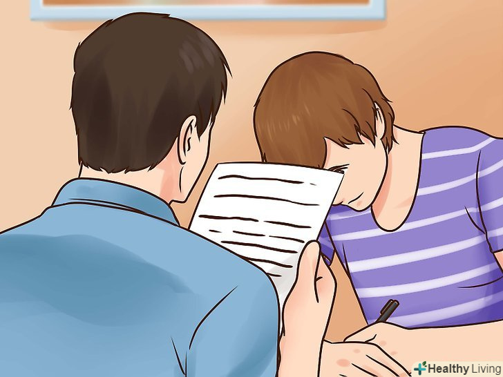 Дихайте глибокоПеред контрольною роботою і під час неї. Завдяки цьому ви зможете розслабитися. Глибоке дихання підвищує рівень кисню в крові. Достатній рівень кисню сприяє ясності розуму і підвищує швидкість мислення. У цьому випадку більше шансів отримати високу оцінку з контрольної роботи.[2]- Вдихайте повітря через ніс протягом 10 секунд.