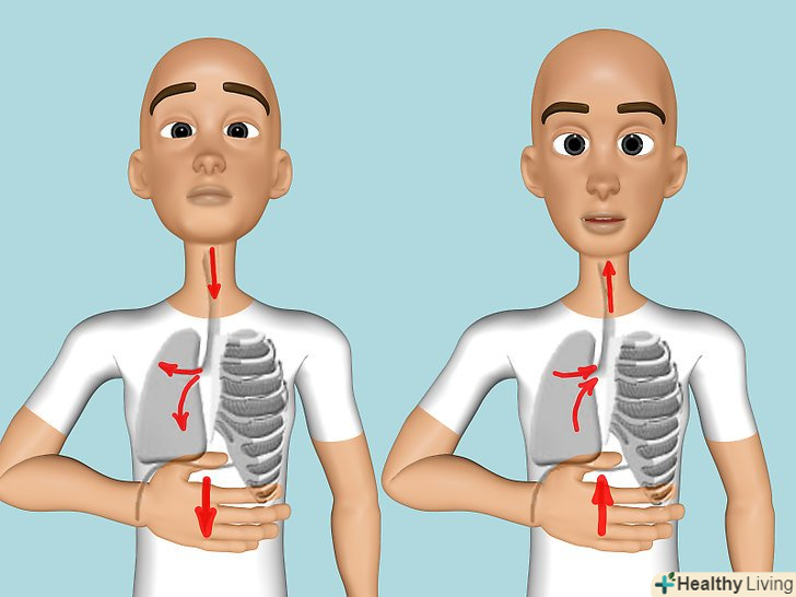Дихайте діафрагмою.багато хто має погану звичку дихати верхньою частиною легенів. Покладіть руку на живіт і спостерігайте за його рухами під час вдиху і видиху. Саме він, а не ваші груди, повинен розширюватися і напружуватися коли ви співаєте.- Переходимо на наступний етап-співайте лежачи! Покладіть на груди книгу і стежте за тим, щоб вона не рухалася. Це буде візуально нагадувати вам про те, що потрібно дихати діафрагмою.