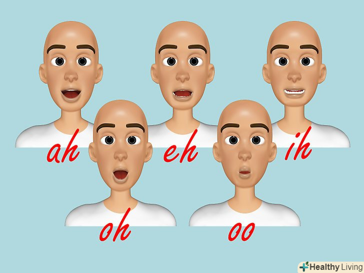 Експериментуйте з вашими голосними.у кожного голосу є один-два звуки, які легше даються у високих октавах, тому під час розспіву пробуйте різні звуки, експериментуйте і ви обов'язково знайдете ті, які вам даються краще за всіх.- Співайте голосні заднього ряду (темними голосними). В англійській мові це звуки "ah," "eh," "ih," "oh," і "oo", а в російській - «о» в двох варіантах: «ɔ» і «ʌ» (як в словах міст і мости) і «у». Намагайтеся наслідувати міміці оперних виконавців, це також може допомогти вам у постановці голосу.