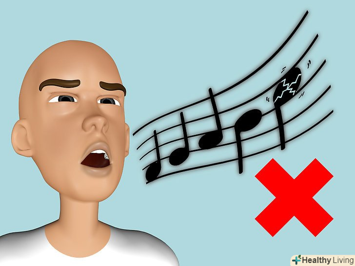 Не перенапружуйтеся.прислухайтеся до себе і свого голосу: якщо ви відчуваєте, що ноти які ви намагаєтеся взяти занадто високі для вас, не намагайтеся робити зайвих зусиль. Спів має бути природним; якщо вам доводиться робити зусилля, то звук буде дуже напруженим і неприродним.- Якщо ви починаєте відчувати дискомфорт або біль при співі зупиніться і відпочиньте. Ви завжди зможете продовжити через пару годин. Голосові зв'язки це такі ж м'язи як і інші - їм потрібно звикнути до тренувань і навантажень, тому нарощуйте навантаження поступово.
