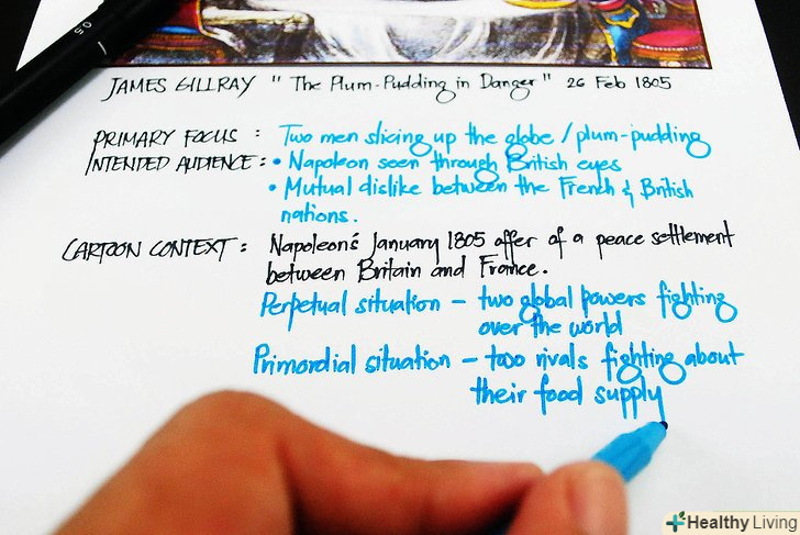 Практично в кожній новинній Газеті по всьому світу друкуються політичні карикатури, що висвітлюють певну точку зору або ідею в своїй ілюстрації. Найчастіше зображення перебільшено і несе не тільки інформативний, але і гумористичний відтінок. Воно також може бути виконано в сатиричному або серйозному Тоні, в залежності від аудиторії, автора і самої ідеї. Використовуйте ці кроки, щоб навчитися аналізувати політичні карикатури і правильно розуміти, що хотів донести автор своєю роботою.