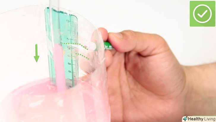 - Засмоктати трохи води в трубку.використовуйте трубку як соломинку для пиття і обережно всосите в неї трохи води. Вода повинна піднятися приблизно до половини трубки. Оскільки вода забарвлена, ви легко зможете побачити її рівень.[11]