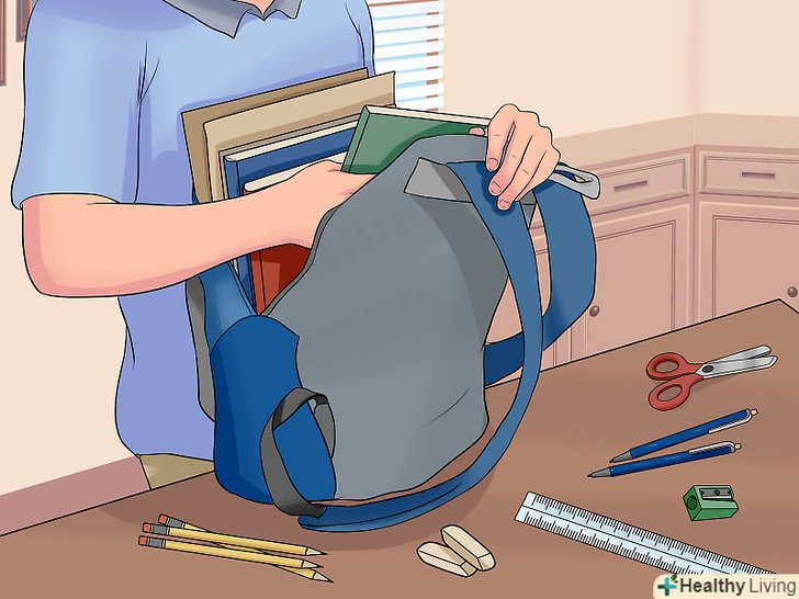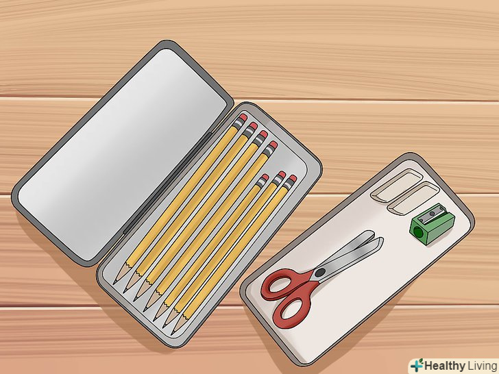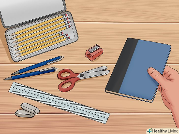 Придбайте інші шкільне приладдя.вам знадобляться олівці, ручки, лінійка, папір і безліч інших речей. Не виключено також, що перед початком нового навчального року варто купити новий ранець або рюкзак.[5]- Якщо різні предмети викладають різні вчителі, багато приладдя знадобляться відразу для декількох предметів. Перегляньте списки необхідного з різних предметів і порівняйте їх між собою. Там напевно знайдуться загальні приналежності, наприклад олівці, які ви зможете використовувати на різних уроках.