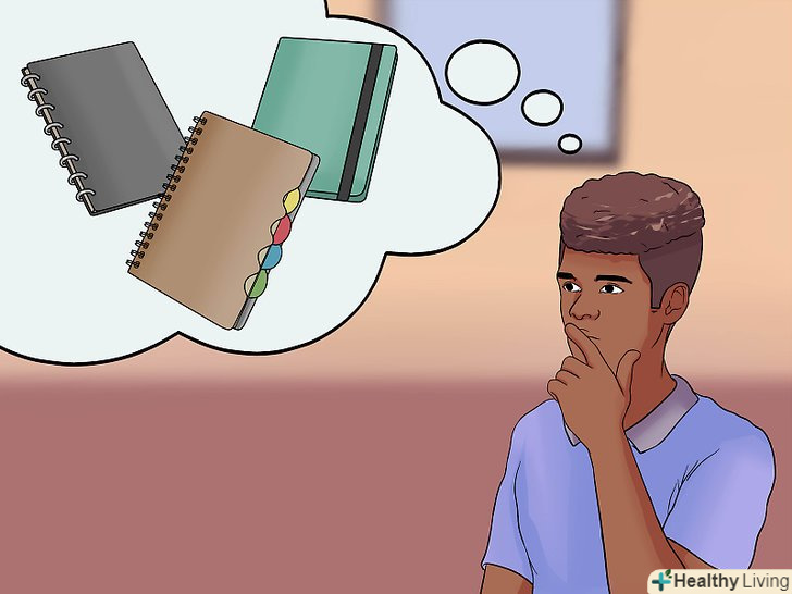 Вирішіть, який вид робочого зошита підійде вам. Це дуже важливе питання. Деякі вважають за краще для ведення записів скріплену спіраллю зошит, в той час як іншим більше подобається швидкозшивач з окремими листами. Виберіть найбільш підходящу і зручну для вас зошит.- Швидкозшивач зручний тим, що з нього завжди можна дістати потрібні листи або вставити нові. Наприклад, ви зможете дістати відповідні листи, якщо вчитель захоче перевірити вашу роботу. Однак швидкозшивач досить громіздкий і займає чимало місця.[3]