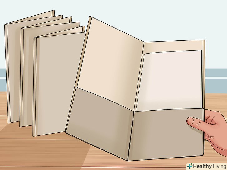 Заведіть для кожного предмета окрему папку.на заняттях вам можуть видавати велику кількість навчального матеріалу, в тому числі і для домашньої роботи. У цьому випадку зручно мати папки для окремих предметів. Надпишіть папки і складайте в них відповідні матеріали.[4]- Беріть папки з собою в школу. Якщо вам дадуть навчальні матеріали з якогось предмету, після перегляду покладіть їх у відповідну папку.