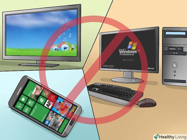 Вимкніть всі електронні пристрої хоча б за одну годину до сну.навіть якщо у вас є звичка постійно заглядати в телефон, необхідно відкласти його в сторону, якщо ви хочете швидко заснути. Вимкніть телевізор, комп'ютер і телефон хоча б за годину до сну, щоб мозок не був занадто перезбуджений. Це допоможе вам розслабитися і вгамувати неспокійні думки перед сном.- Заведіть звичку вимикати електронні пристрої щовечора, а не тільки напередодні нового навчального року. Вона сприяє гарному настрою і здоровому сну.