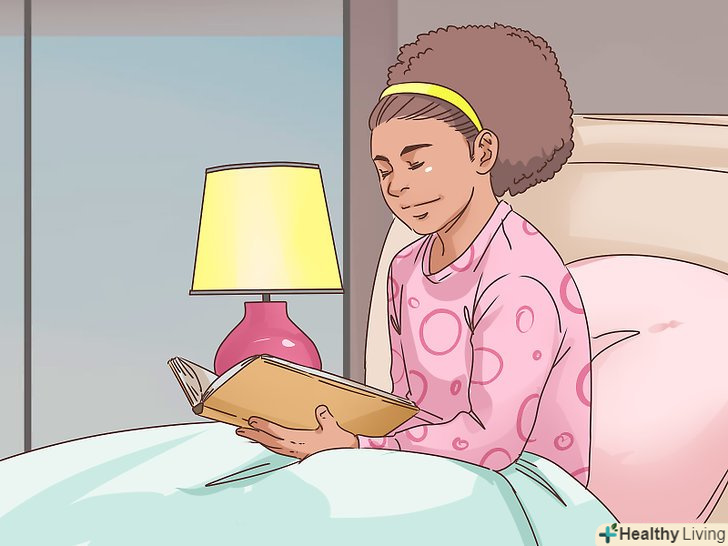 Приглушіть світло.мозок використовує зміну освітлення для синхронізації "біологічного годинника", тому чим раніше ви приглушите світло, тим раніше ваш мозок зрозуміє, що пора спати. Після вечері постарайтеся не проводити багато часу в приміщенні з яскравим світлом. Для читання краще включити настільну лампу з м'яким світлом або навіть запалити свічки, щоб дати сигнал організму. Світло дуже сильно впливає на наш стан і перехід до сну.[5]- Вранці після пробудження слід відкрити штори і наповнити кімнату світлом. Підкажіть своєму організму, що прийшов час вставати.