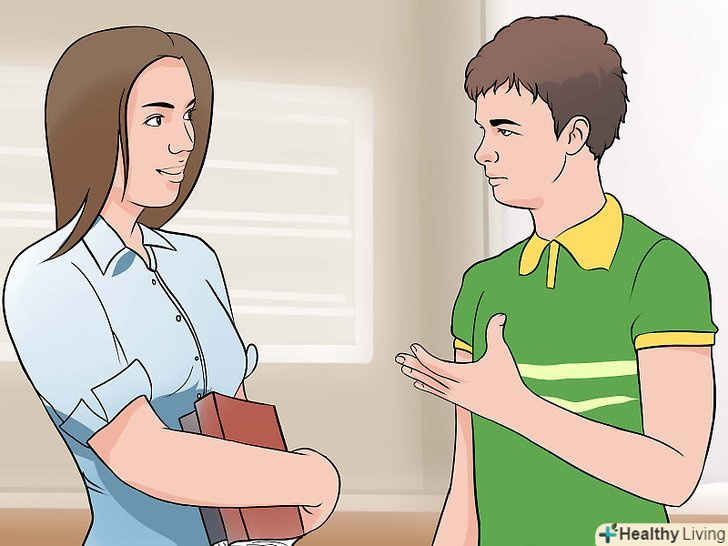 Налагодьте теплі стосунки з вчителями.ще один спосіб досягти успіху в навчанні-це налагодити тісний зв'язок з вчителями. Необов'язково підлизуватися або ставати їх кращим другом – між вами просто має бути взаєморозуміння, так як це стане в нагоді, коли вам буде потрібна додаткова допомога, а також підвищить ваш інтерес до матеріалу. Намагайтеся не запізнюватися на заняття і слідувати правилам, встановленим вчителями, щоб отримати максимальну вигоду з лекцій.- Не хвилюйтеся через те, що люди можуть порахувати вас вчительським улюбленцем, якщо ви привітні з вчителями. Ви просто намагаєтеся стати хорошим студентом.