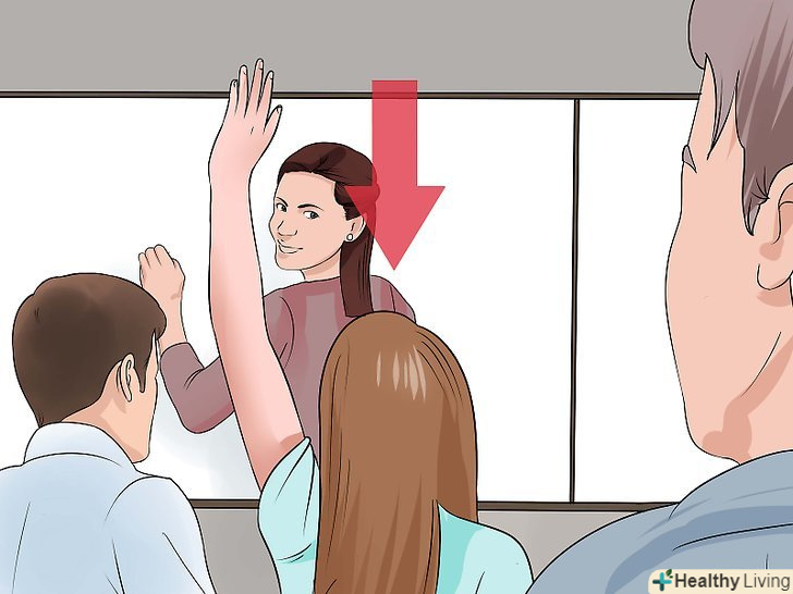 По можливості сідайте ближче до вчителя.якщо ви перебуваєте в аудиторії, де можна сідати куди завгодно, то вам слід сісти попереду, ближче до вчителя. Це допоможе вам сконцентруватися, оскільки ви не станете відволікатися і займатися сторонніми справами, коли вчитель стоїть прямо перед вами. Це також допоможе вам налагодити більш тісний зв'язок зі своїм учителем, особливо, якщо ви у великому лекційному залі, так як вчителі мають схильність звертати увагу на тих, хто сидить попереду.- Не переживайте через те, що люди вважатимуть вас підлабузником. Ви просто робите все, що можете, щоб засвоїти необхідний матеріал.