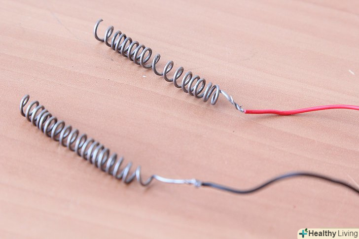 Навейте шматочки дроту на тонкий металевий стрижень, щоб надати їм форму пружин. Це будуть електроди паливного елемента. Візьміться за кінець дроту і туго навийте її на стрижень, щоб вийшла циліндрична пружина. Зніміть зі стрижня перший дріт і навийте другий шматочок дроту.- В якості стрижня для навивки дроту можна використовувати цвях, дротяну вішалку або щуп тестера.