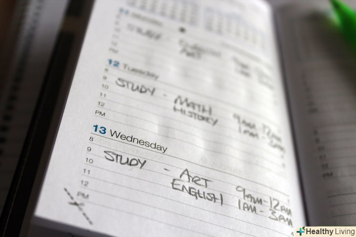 Призначте для підготовки кожного предмета певний час.ще одна важлива характеристика-регулярність занять. Якщо ви знаєте, коли потрібно займатися, вам буде легше спланувати свої дії на цей період. Ніколи не займайтеся в поспіху! Склавши план підготовки до іспиту, ви зможете займатися день за днем, витративши не так багато часу. І при цьому у вас не буде гнітючого почуття, що ви не встигаєте і вам потрібно вивчити занадто багато. Звичайно, швидкість навчання у різних людей буде неоднаковою. Хтось схоплює швидше і може запам'ятати великий обсяг інформації, іншим за один раз легше переварити малу порцію. Тому потрібно орієнтуватися не на тривалість занять, а на те, чи встигаєте ви запам'ятати предмет, щоб продемонструвати відмінні знання на іспиті.