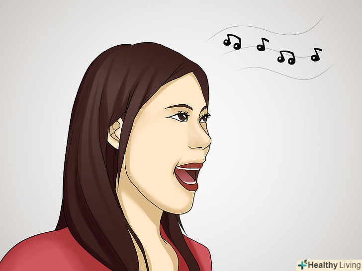 Відкрийте вашу голову.це, звичайно, метафора. Це одне з тих речей, які співаки виробляють; якщо ви раніше працювали над своїм голосом, ви, можливо, знаєте, що це означає. Кращий спосіб візуалізувати-це представити ноти, які виходять з верхівки голови. З якоїсь причини, ці фантазії можуть бути досить ефективними.- Іноді, ми також схильні співати в ніс; якщо ви чуєте свій голос, що рухається в цьому напрямку, нагадайте собі «відкритися». Ви повинні почути зміни вашого голосу автоматично-щось більш природне і менш фальшиве, якщо у вас все вийде.