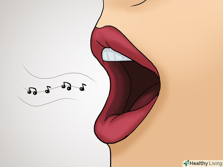 - Співайте арпеджіо або за шкалою "брр", як звук труби або слона. Це також місця, де звук виривається високо в небо і повинен добре підтримуватися. Співак повинен злегка піджати губи і притиснути язик до нижніх зубів. Губи повинні бути вільними.